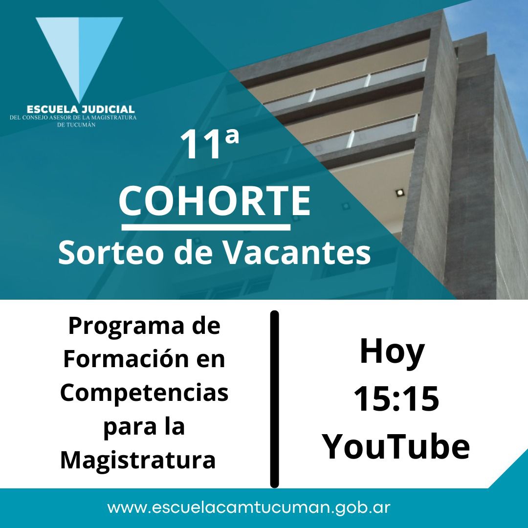 La Escuela Judicial del Consejo Asesor de la Magistratura de Tucumán invita a seguir en vivo el Sorteo Público de Vacantes para los aspirantes a la 11va Cohorte del Programa en Formación en Competencias para la Magistratura.